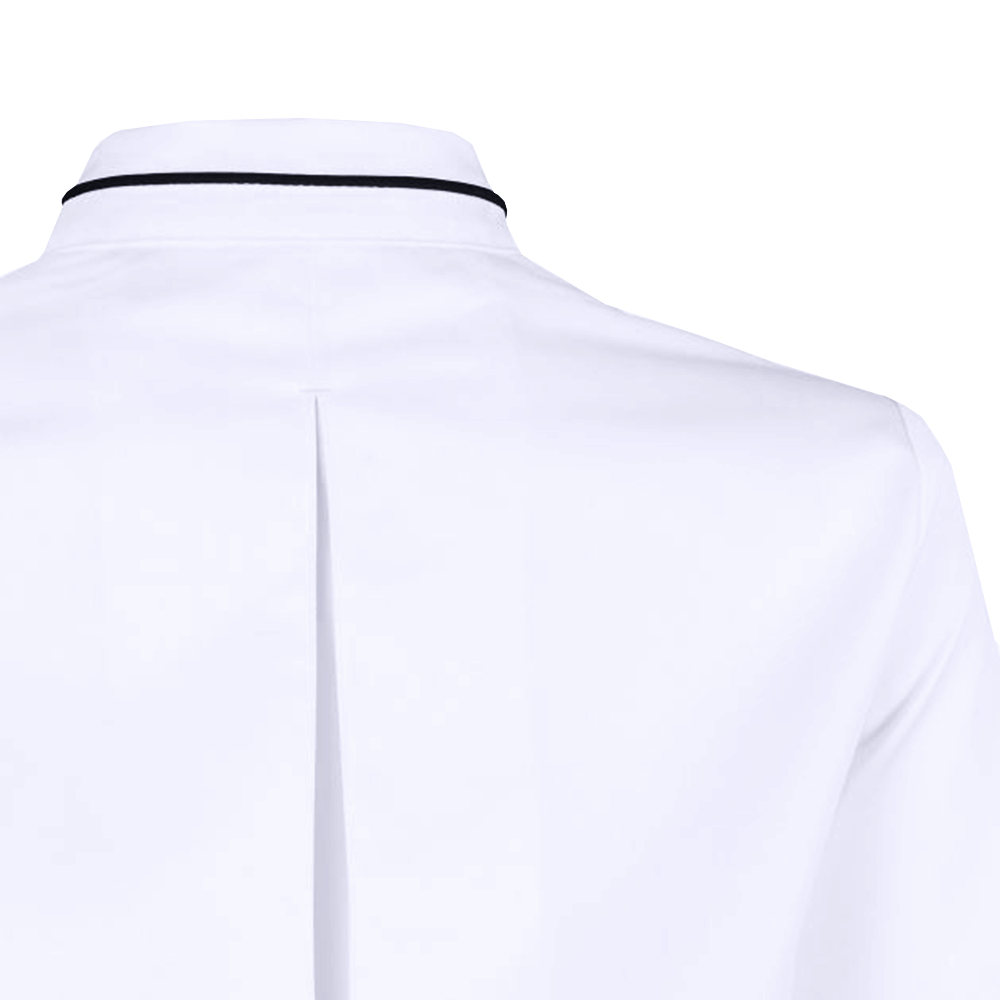 - Ribete en cuello y bolsillo de pecho.