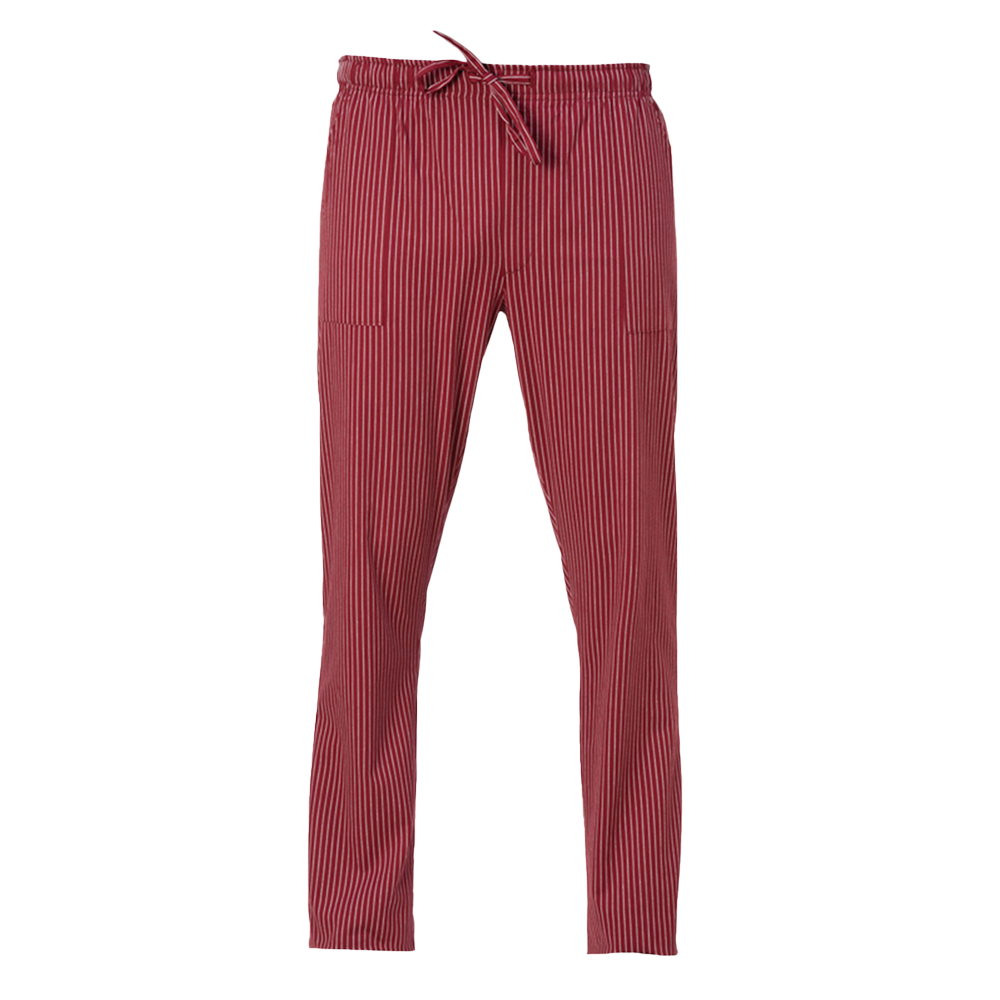 Pantalón regular fit y corte tendencia, confeccionado en elegante tejido de raya diplomática de tacto suave y resistente a la decoloración. Cintura con cordón, dos bolsillos laterales y pequeño bolsillo trasero.