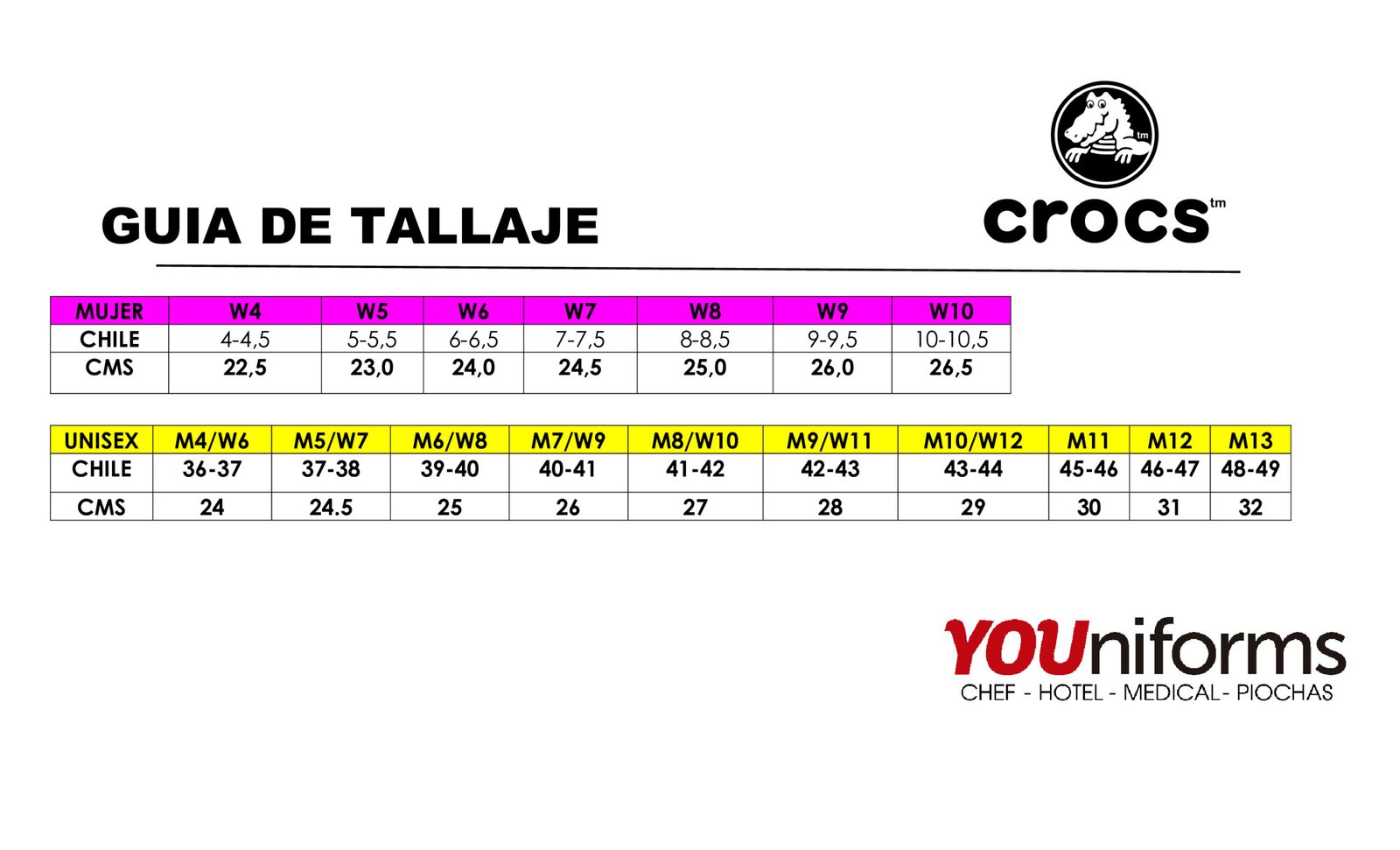 | TALLAJE CROCS MUJER | W10 – 40, W5 – 35, W6 – 36, W7 – 37, W8 – 38, W9 – 39 |